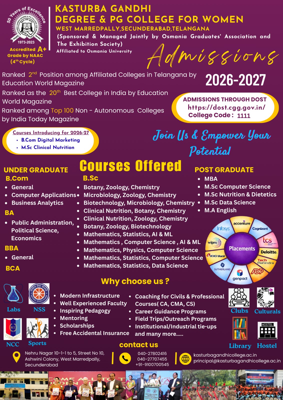 Marredpally, in the heart of the city. The college was established in 1973 by the Osmania